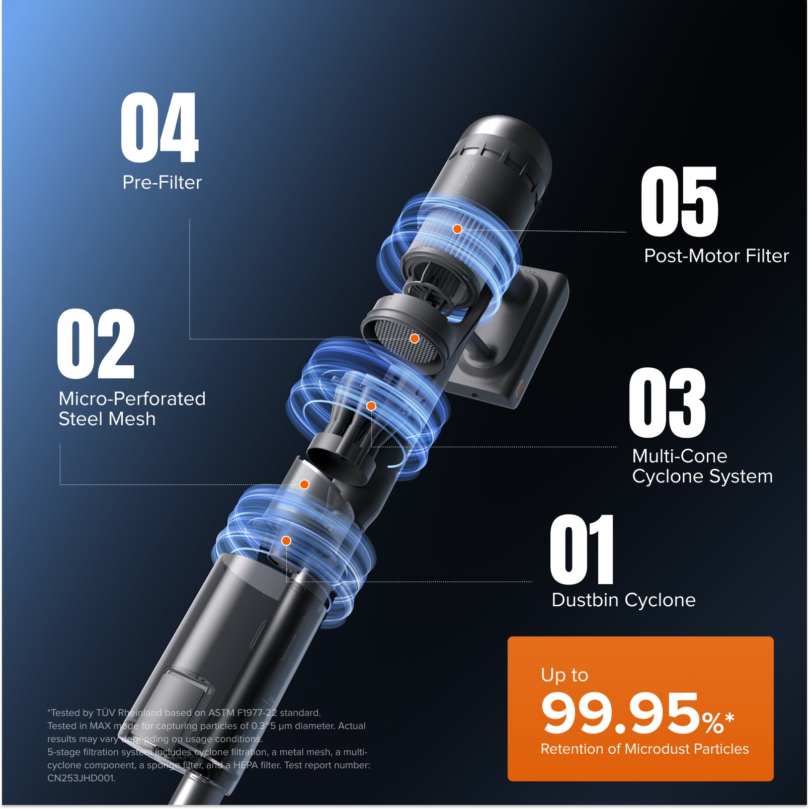 -Advanced 5-Stage Filtration & 9-Cone Cyclone Tech