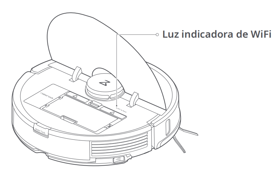 1. Abra la tapa del robot para ver la luz indicadora de WiFi.