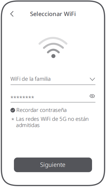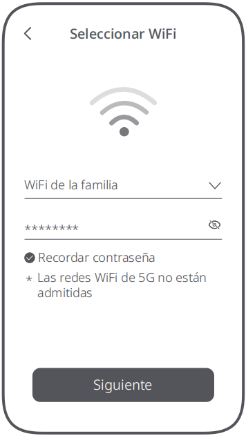 2. Conecte a una red WiFi de 2.4 GHz e ingrese su contraseña de WiFi. Las redes de 5 GHz no están admitidas.