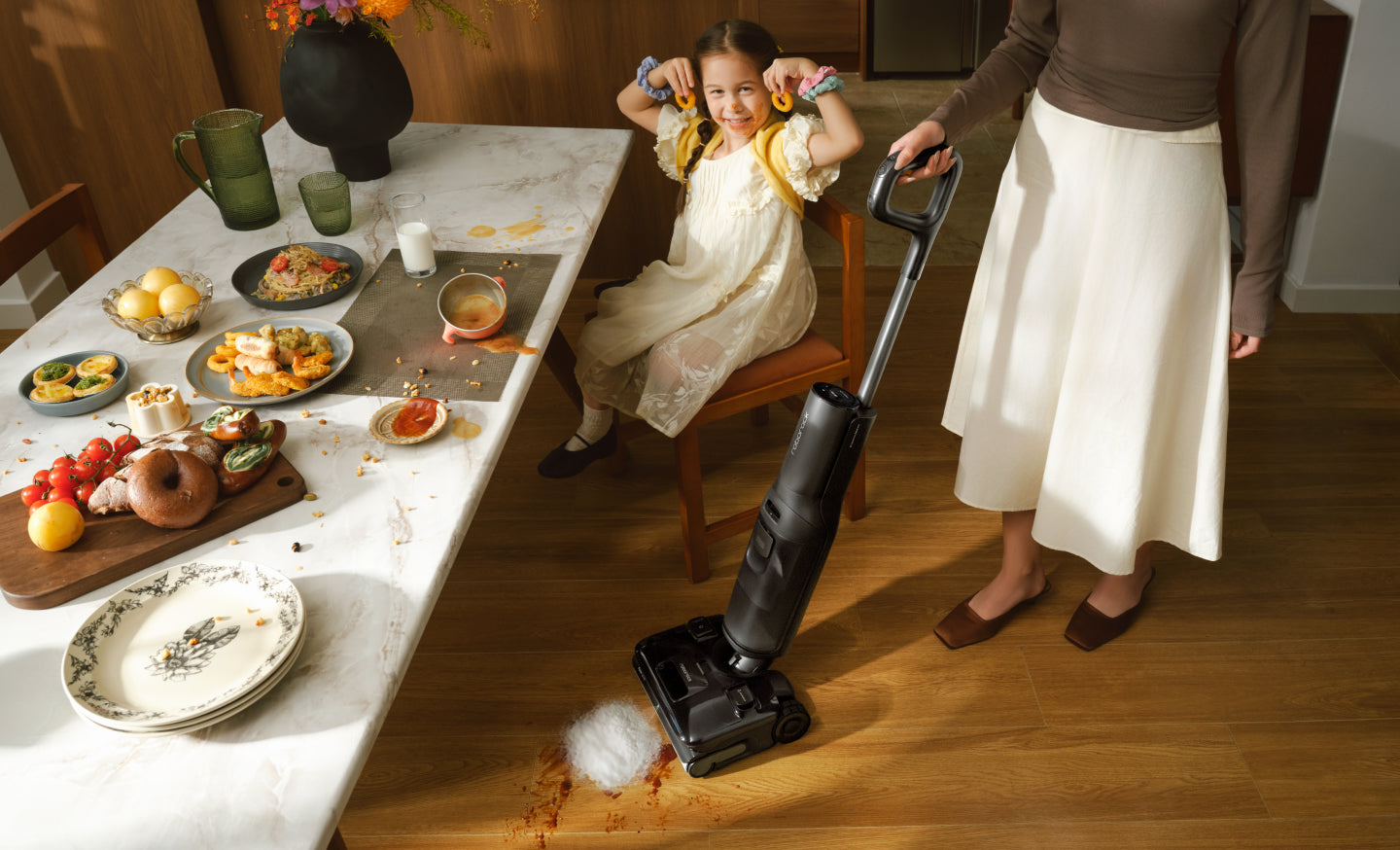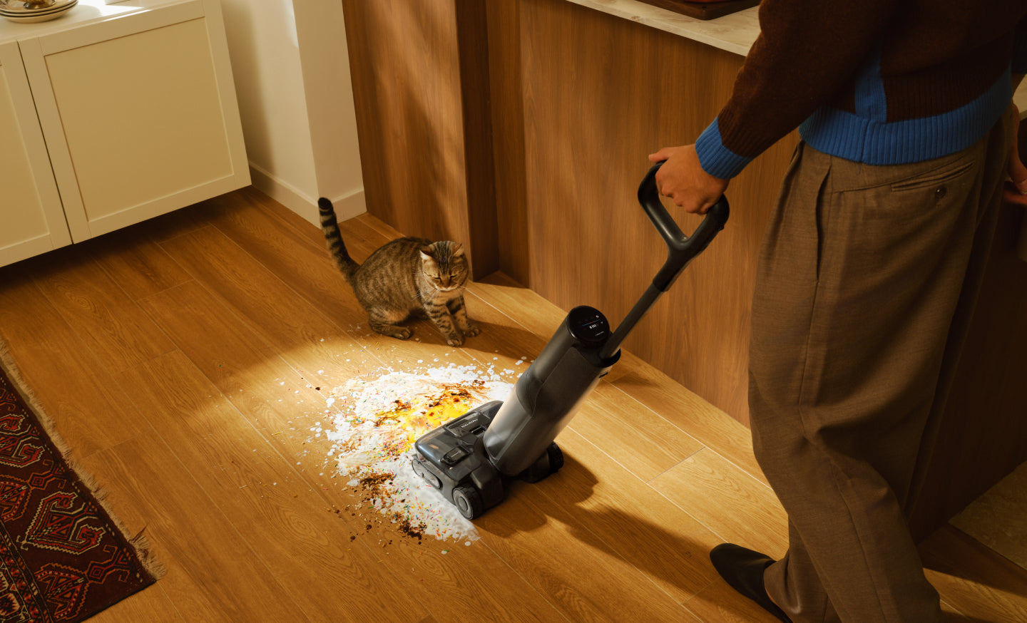 With 25,000 Pa suction, 30 N downward pressure, and 430 RPM brush rotation, it lifts embedded dust and tackles wet and dry messes for a deeper clean.
