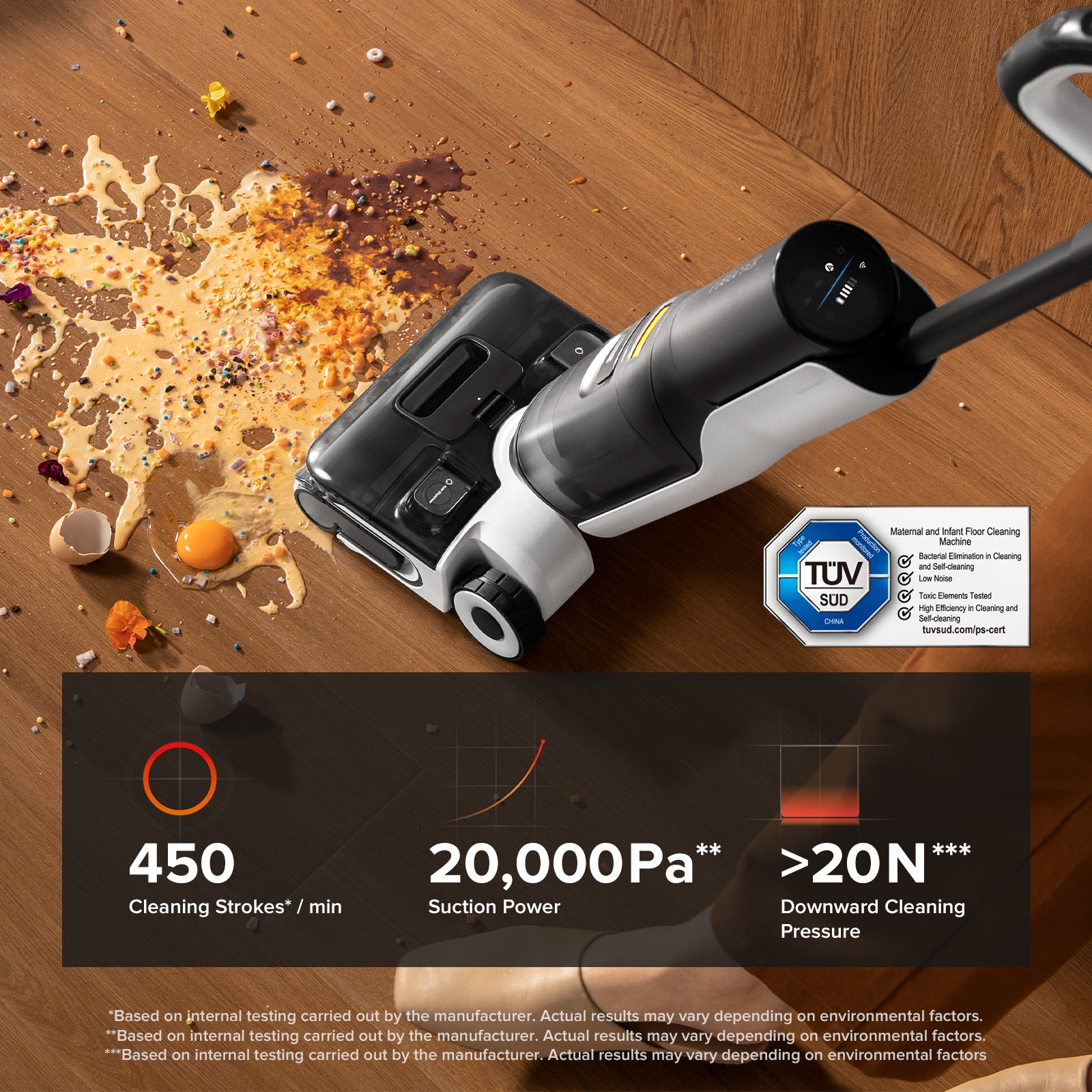 Spend less time cleaning and more time living. With 20,000* Pa suction power and a 450 RPM cleaning frequency, the Roborock F25 Series delivers spotless results in a single stroke.