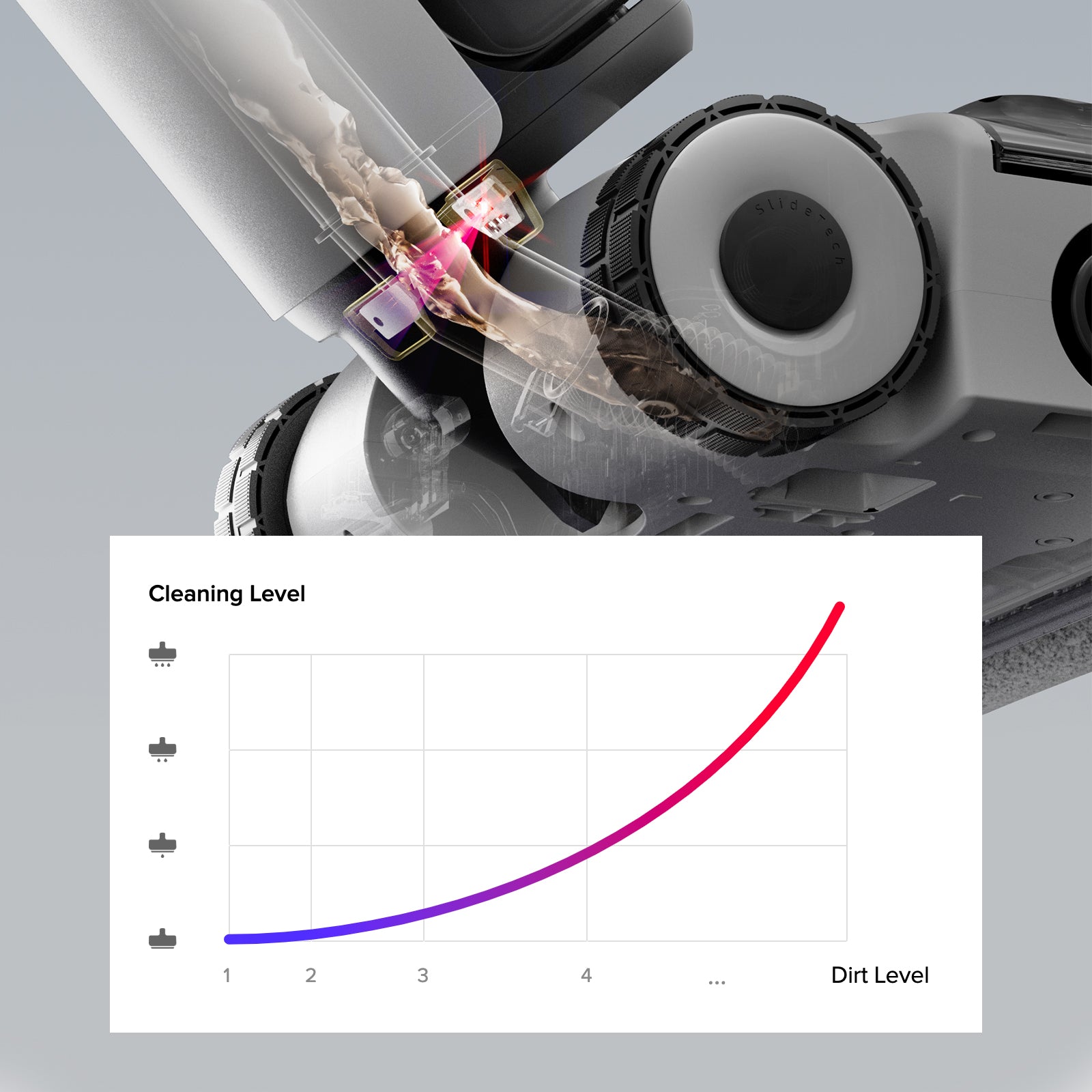 The smart sensor detects dirt levels in real-time, automatically adjusting for optimal cleaning intensity across surfaces as it cleans*.