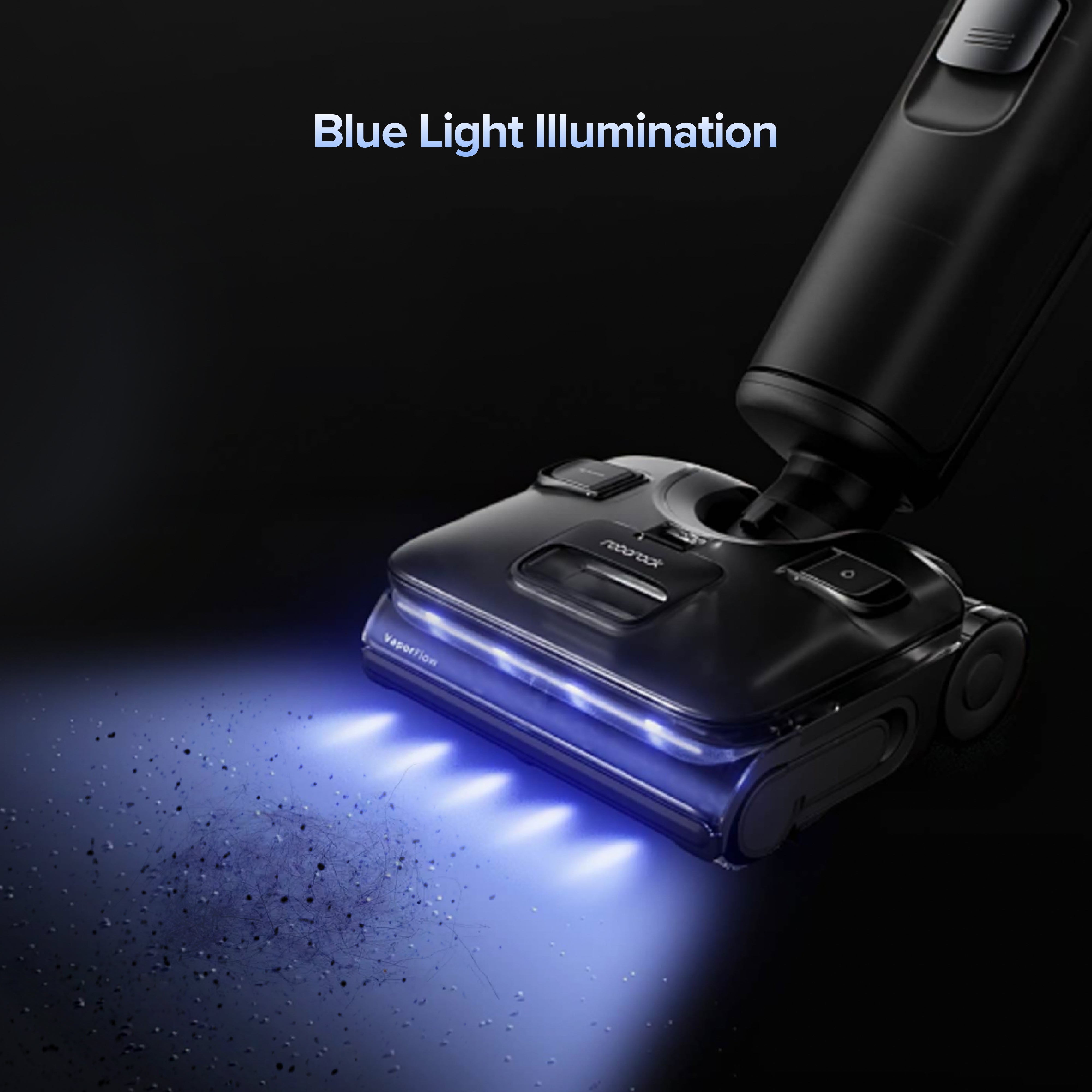 Blue Light illuminates hidden dust and fine particles for a clearer view and more confident cleaning.