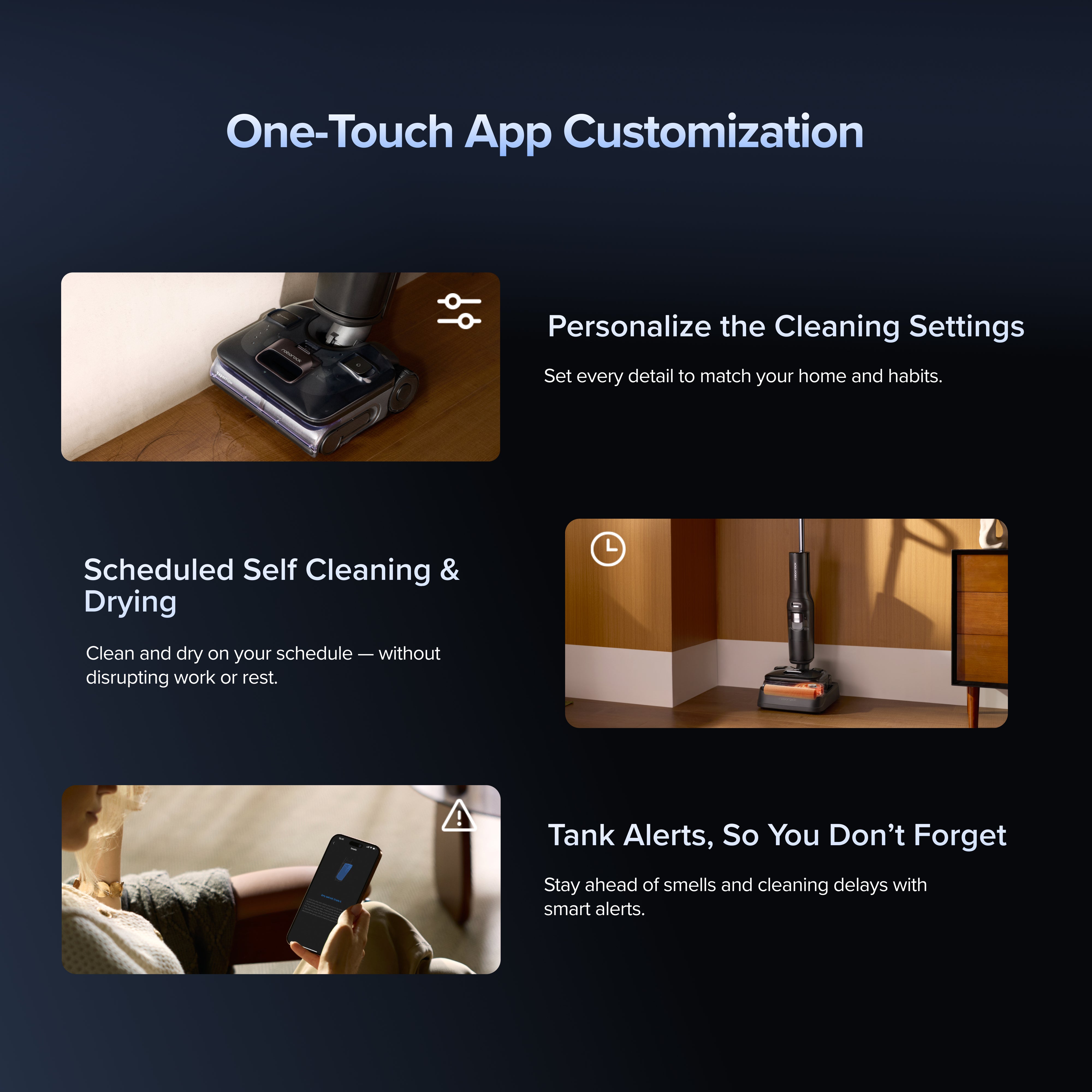 Clean and dry on your schedule— without disrupting work or rest.