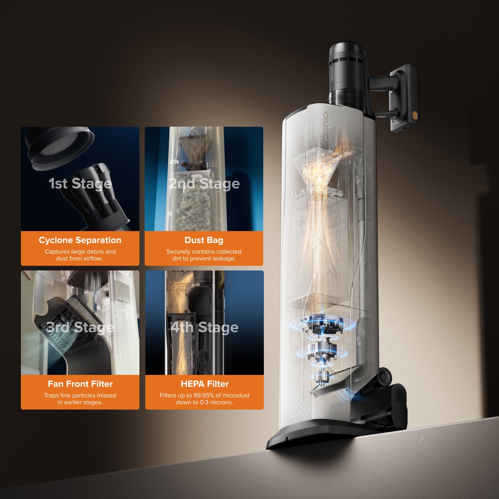 Cleaning isn't truly finished until every trace of dust is gone - until now. With automatic dust evacuation and charging, our all-in-one auto-empty dock handlesthe hidden cleanup for you. Paired with powerful suction, long battery life, an anti-tangle brush, and a multi-filtration system, the Roborock H60 Hub Series delivers effortless, efficient, and truly hygienic cleaning.