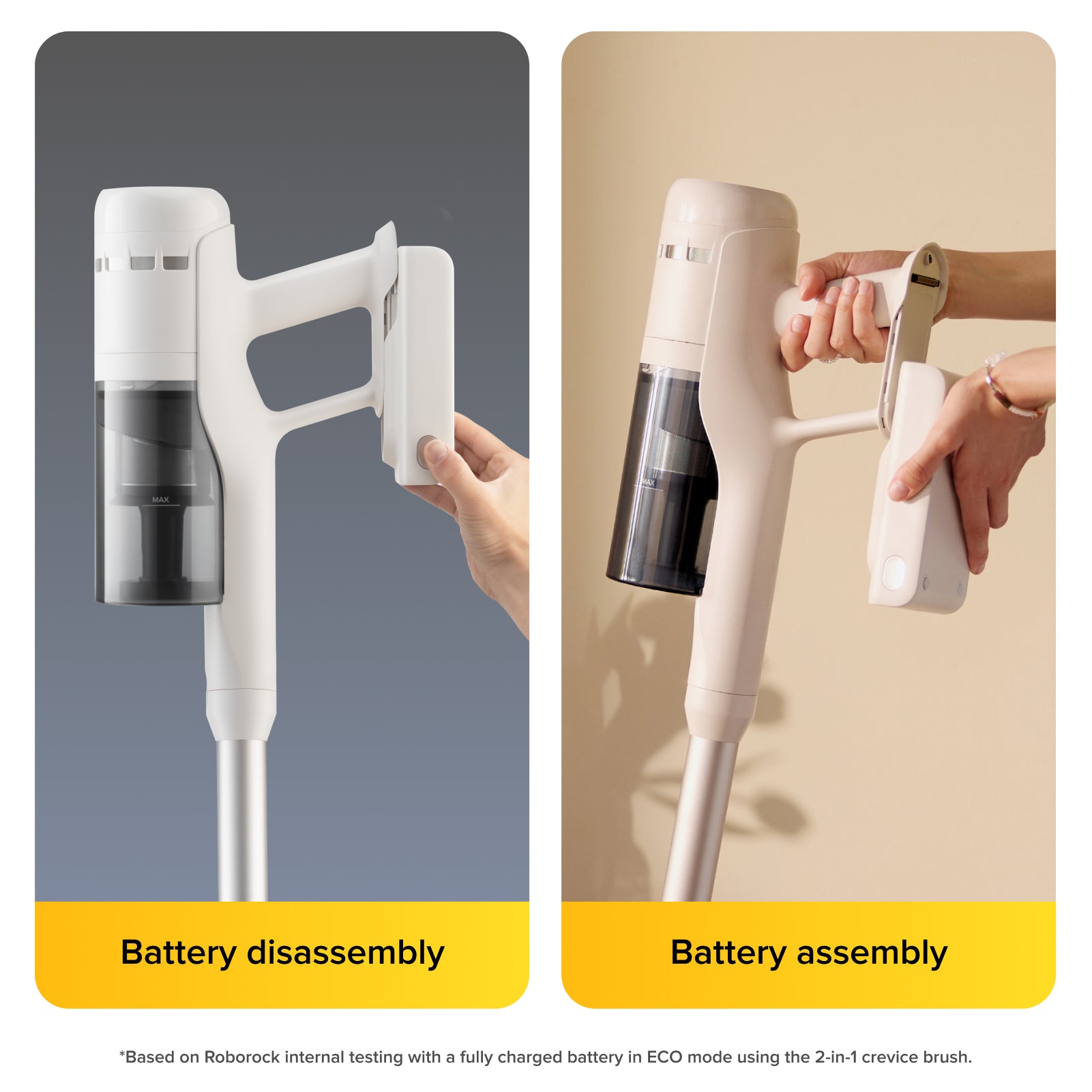 The Roborock H60 comes with a detachable battery that provides real-time display of both cleaning mode and remaining battery life. This design allows you to easily remove the battery for convenient charging, ensuring your vacuum is always ready to deliver powerful performance whenever you need it.