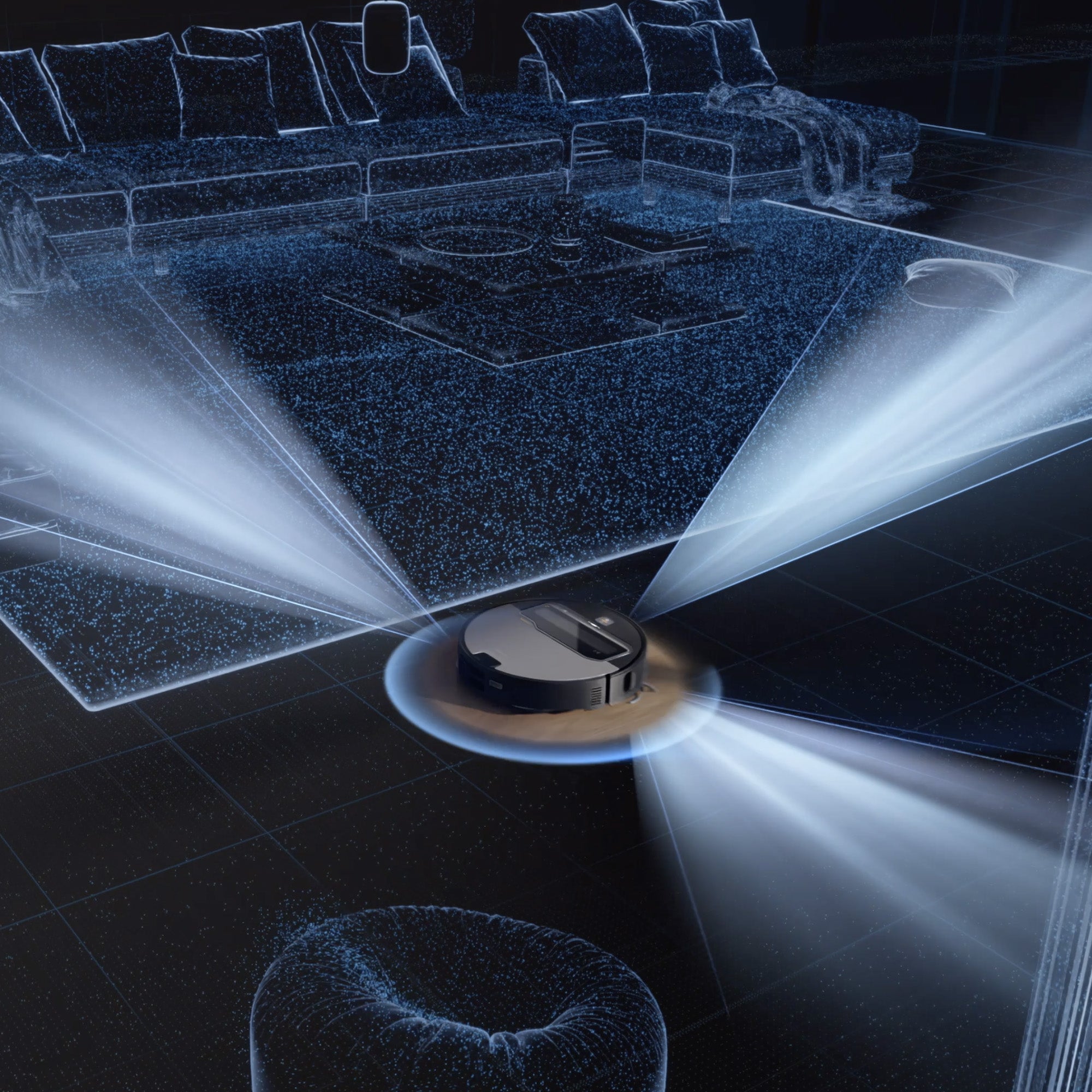 Powered by structured light technology, the system intelligently detects and navigates around obstacles, even in cluttered rooms with items scattered on the floor, ensuring smooth and uninterrupted cleaning.*