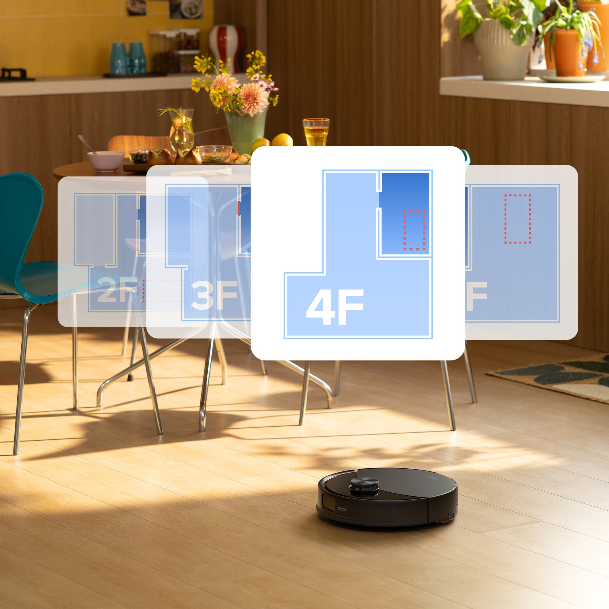 Perfect for homes with more than one floor, the multi-level mapping system automatically recognizes different levels—just place the robot down, and it does the rest. No extra docks, no manual level selection in the app. Supports up to four levels.