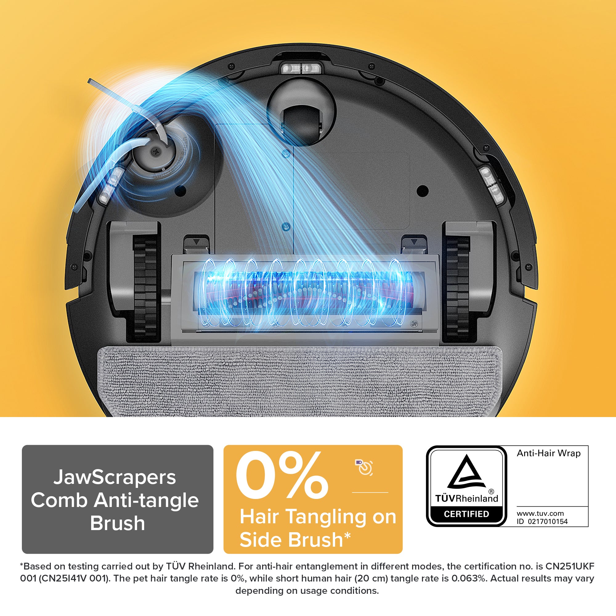 Featuring a JawScrapers Comb anti-tangle main brush arnd an anti-tangle side brush, this advanced system ensures smoother cleaning performance with less maintenance.