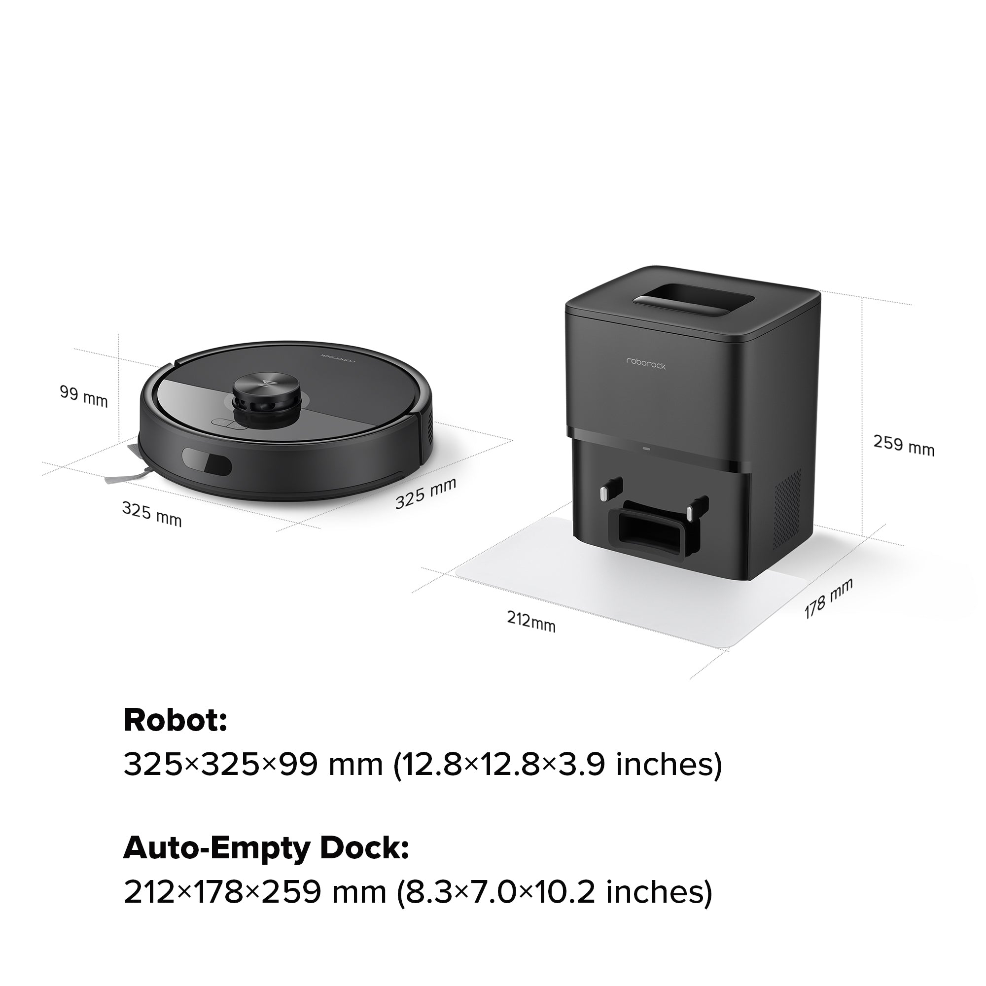 Robot Dimensions: 12.80×2.80×3.90 inches; Auto-Empty Dock: 8.35×7.01×10.20 inches