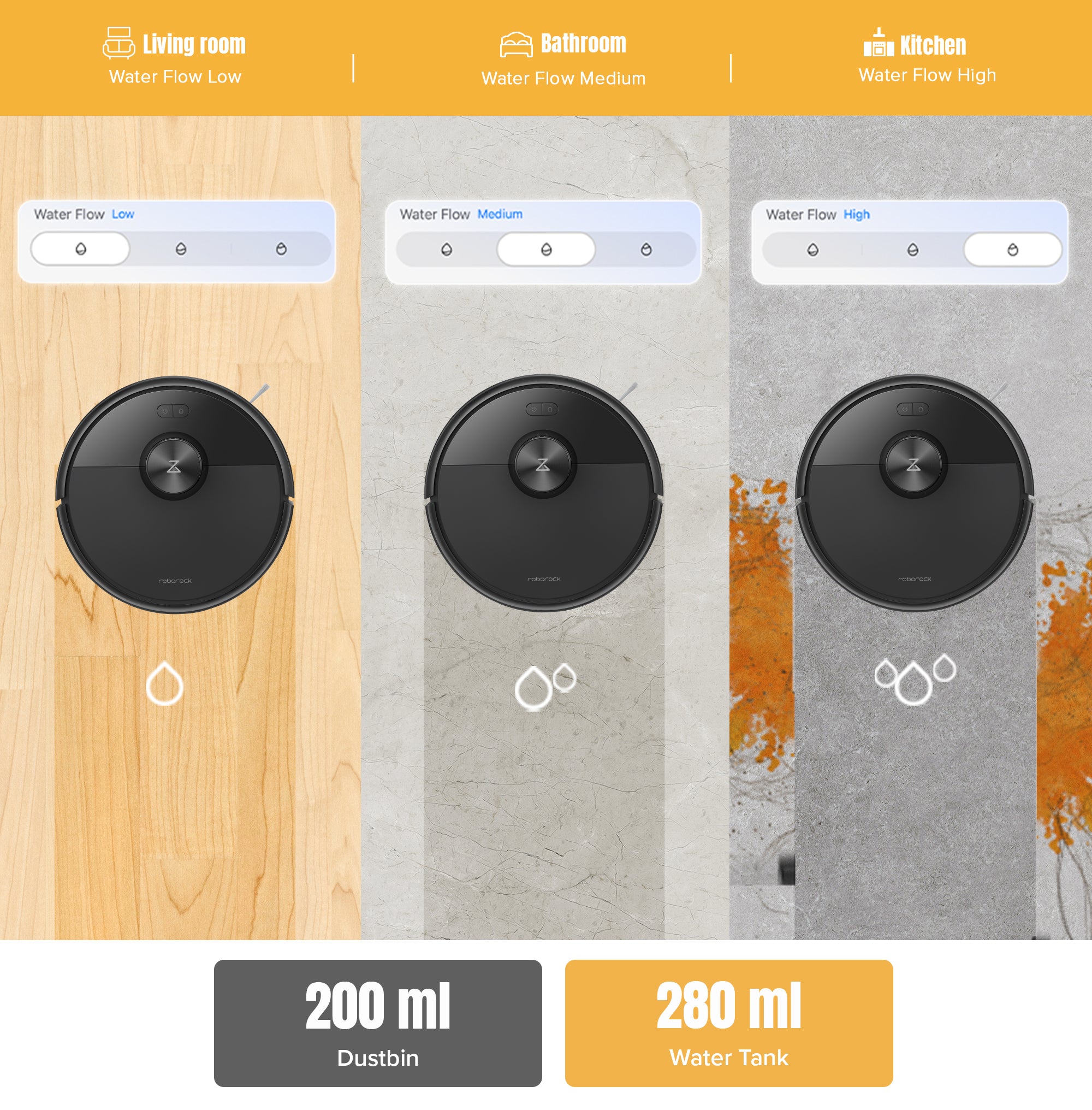 The Q7 M5+ maintains steady mop pressure with three adjustable water levels, ensuring optimal cleaning for any suirface.
