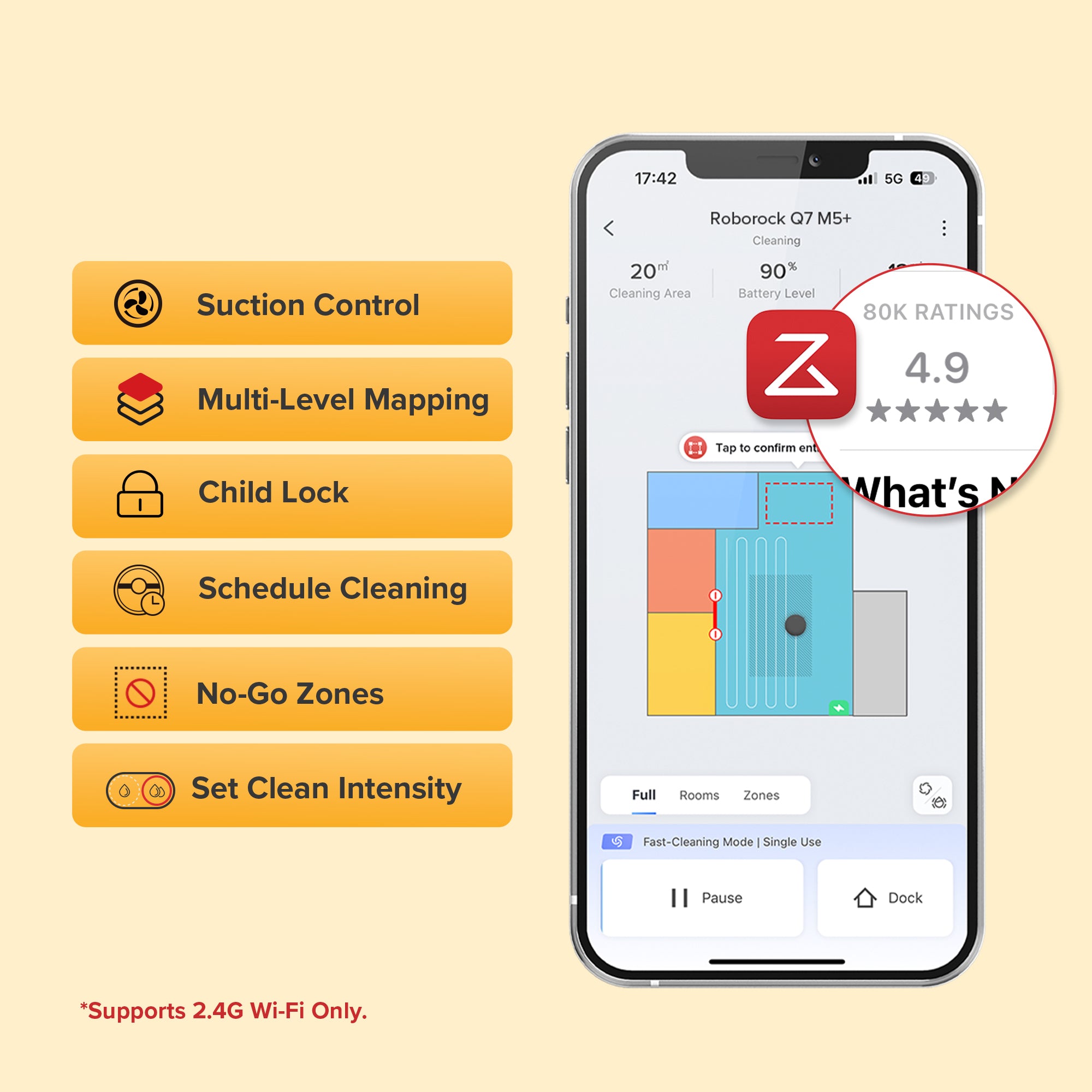 Automate your cleaning routine with scheduled cleanings, set no-go zones around pet areas, and monitor progress and battery life in real time. All of these features are easily accessible from your smartphone, offering you greater convenience and control. Please note that the app supports 2.4GHz Wi-Fi only.