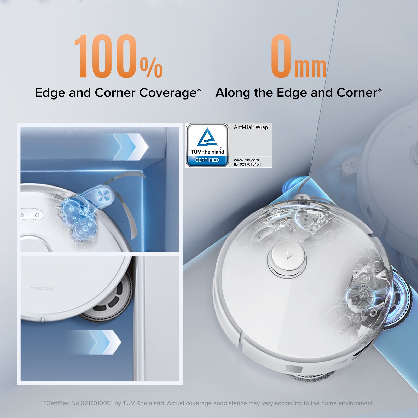 Roborock's exclusive FlexiArm™ Arc Side Brush and Edge Mopping System offers supreme thorough cleaning coverage, leaving behind no dirt by eliminating blind spots.