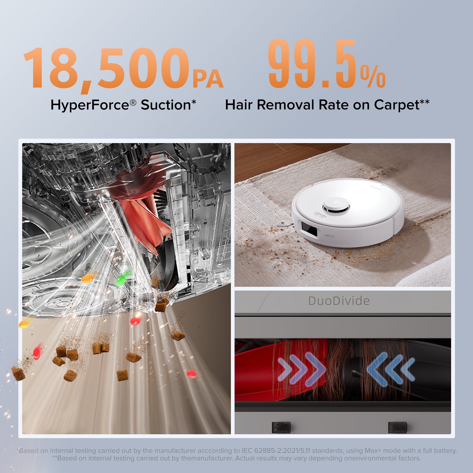 1. Up to 17,000 Pa HyperForce Suction Power for strong cleaning performance.