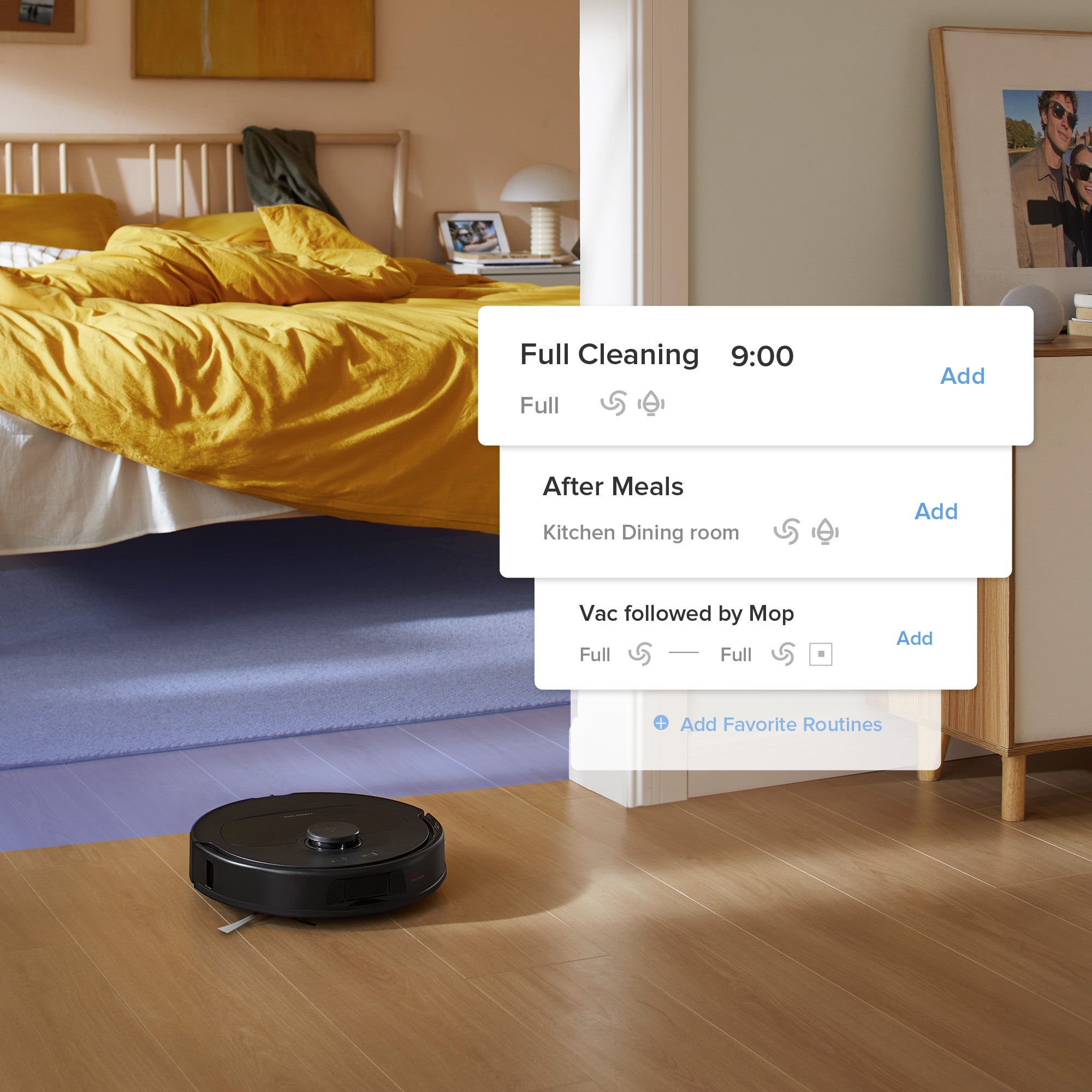 Schedule cleaning and save the operations you frequently use as shortcuts. Activate them anytime in the Roborock App or home screen widgets.