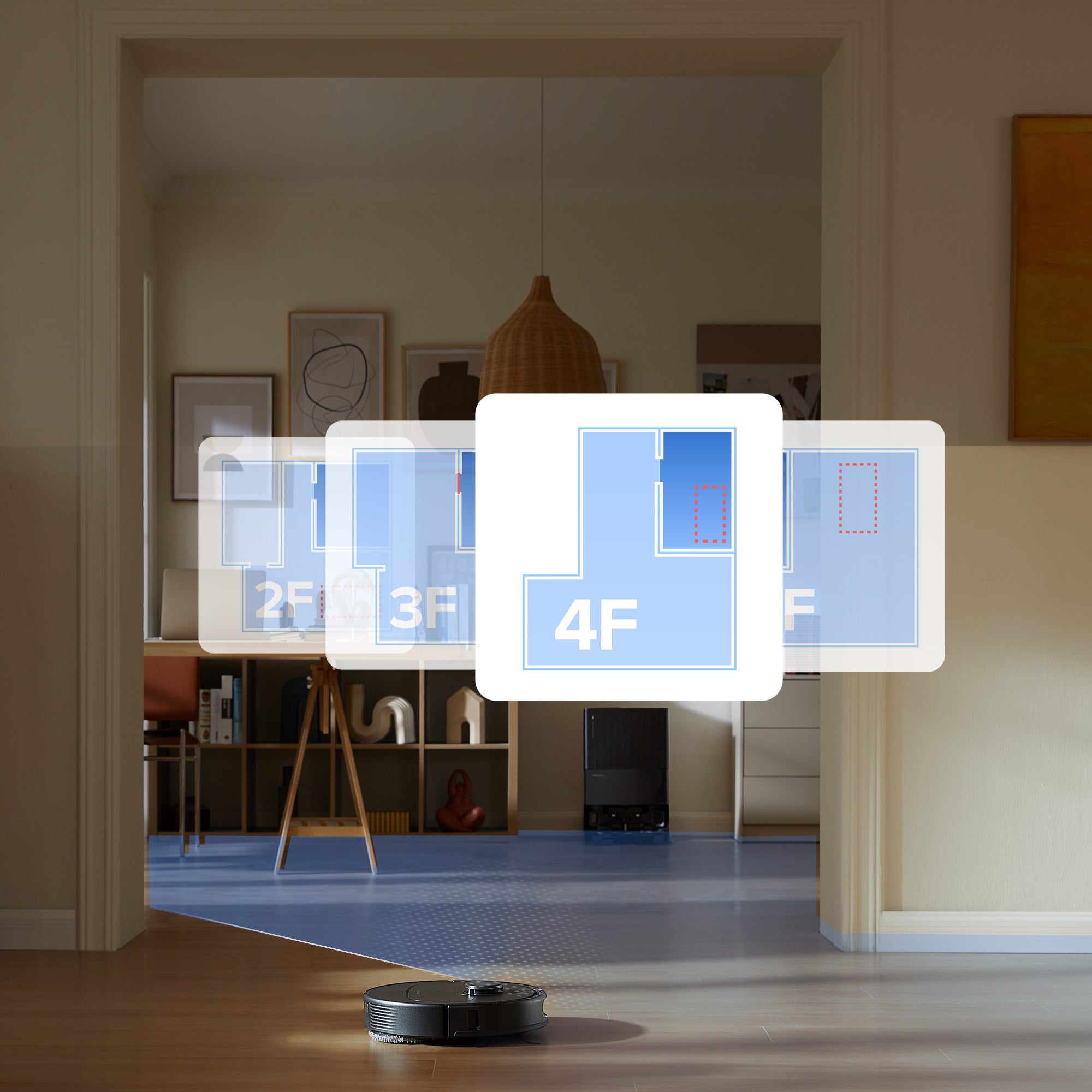 Multi-floor mapping system automatically recognizes and creates maps up to 4 floors. All you have to do is put the robot down.