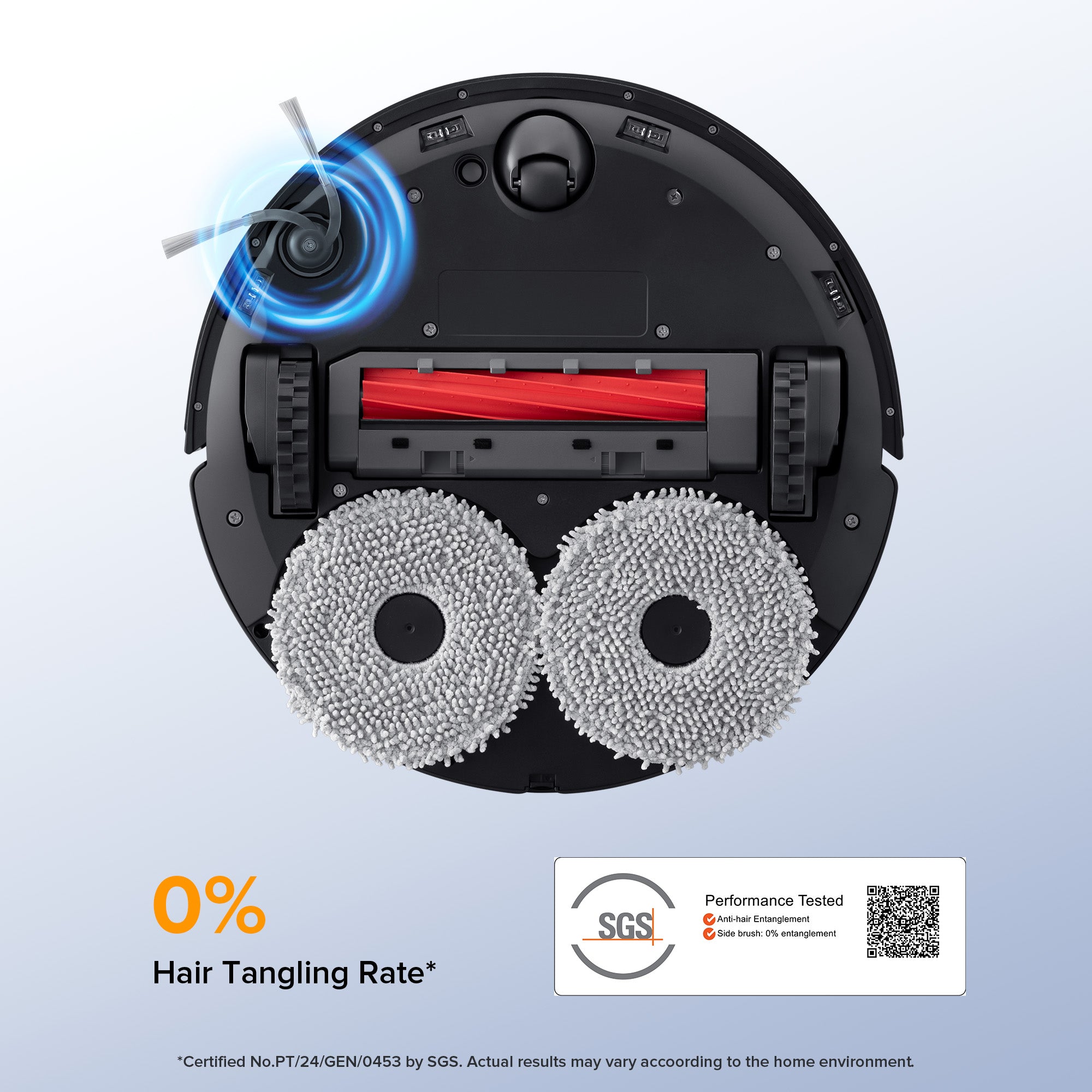 ⑤. QV 35A offers an Anti-Tangle Side Brush. It is SGS certified, achieving a 0% hair tangling rate, a feature not available on Qrevo.