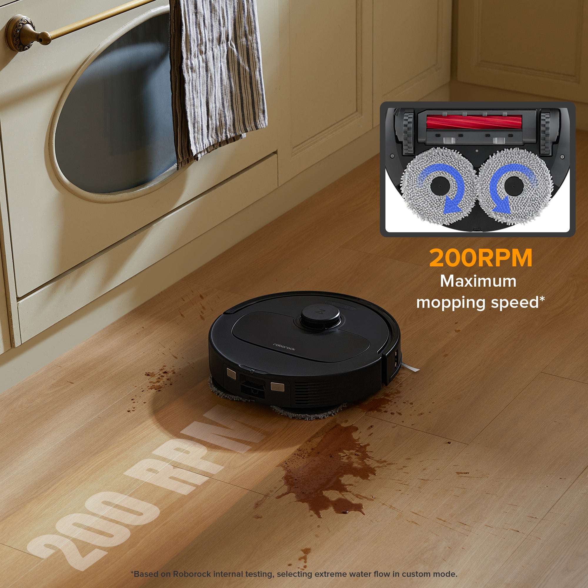 *Based on Roborock internal testing, selecting extreme water flow incustom mode. Actual results may vary depending on usage conditions.