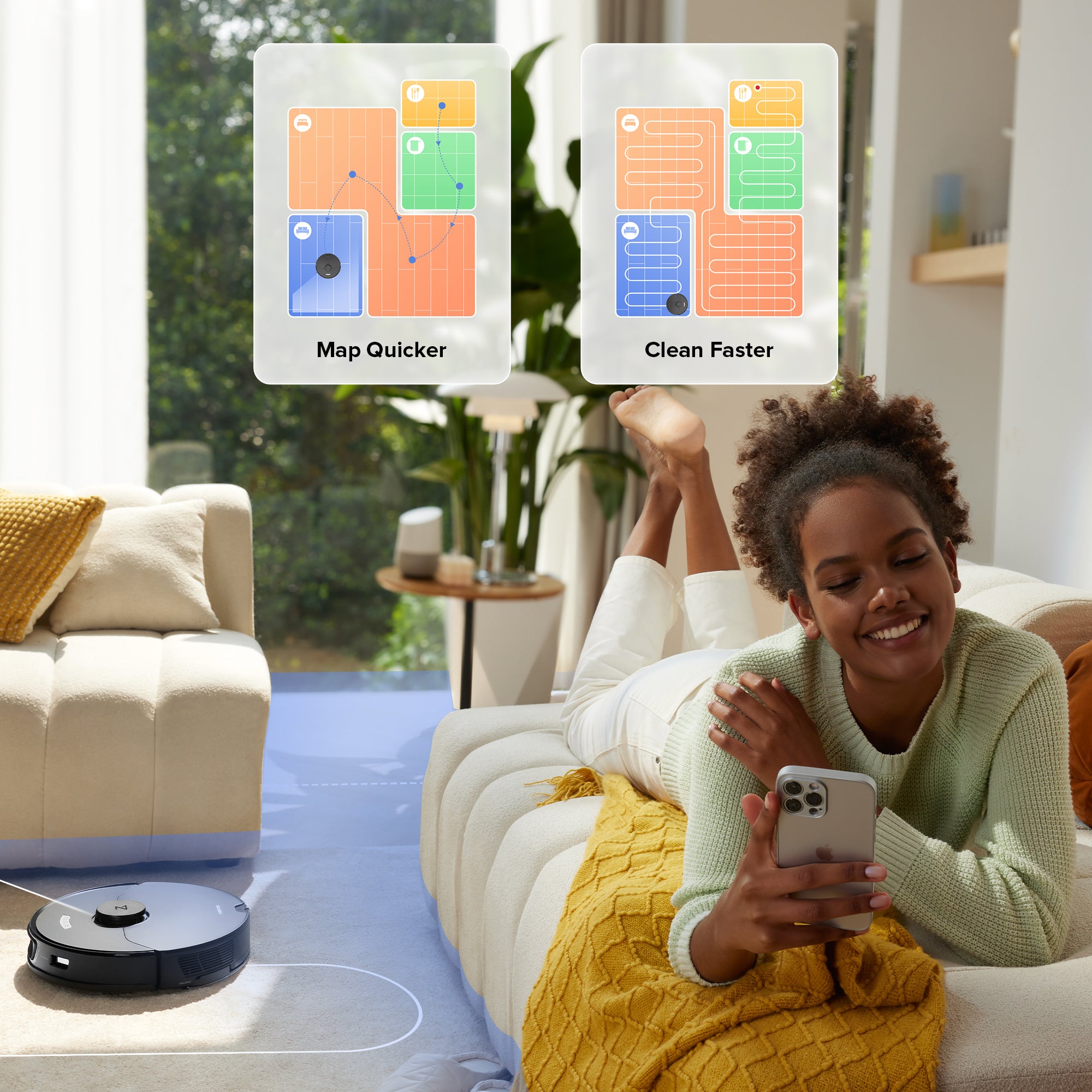 On its first run, your robot will quickly create a detailed map of your home without you needing to do anything, so you can start cleaning ASAP.