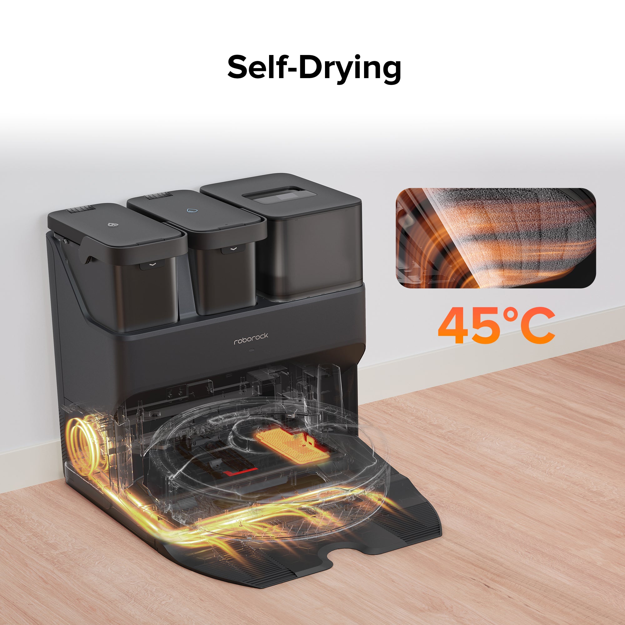 A: The S7 Max Ultra docking station supports self-empty, mop-wash and water tank refill features. Moreover, it has a built-in drying module to help dry the mop cloth, washing sink and water filter, effectively prevent odor.
