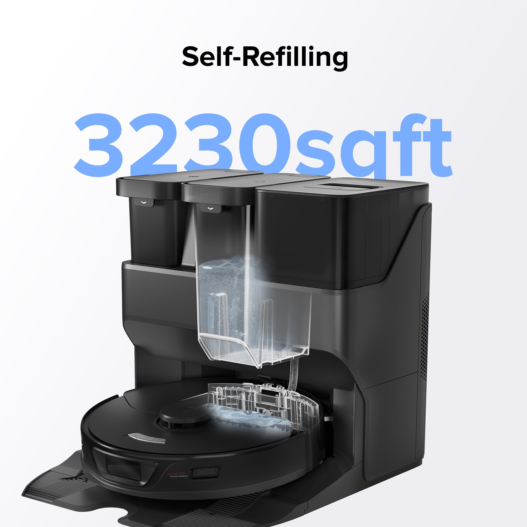 Fills water tank automatically for a mopping range up to 3230sqft (300 sqm)*.