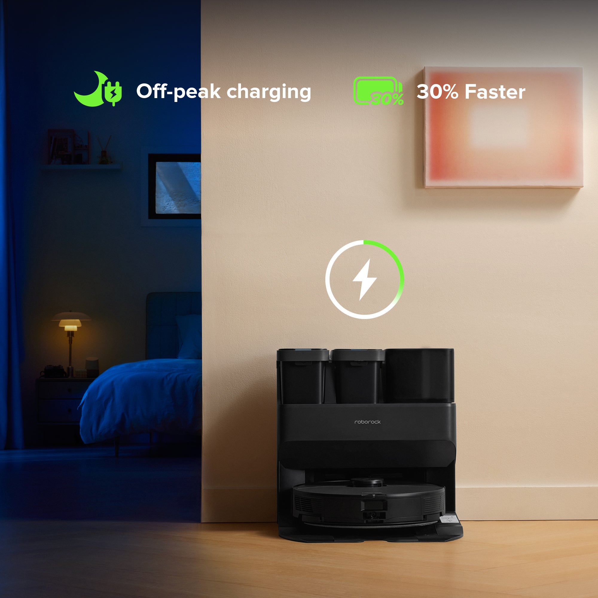 Quickly resume cleaning by charging 30% faster* than before and get the most from low energy prices by charging during off-peak hours.