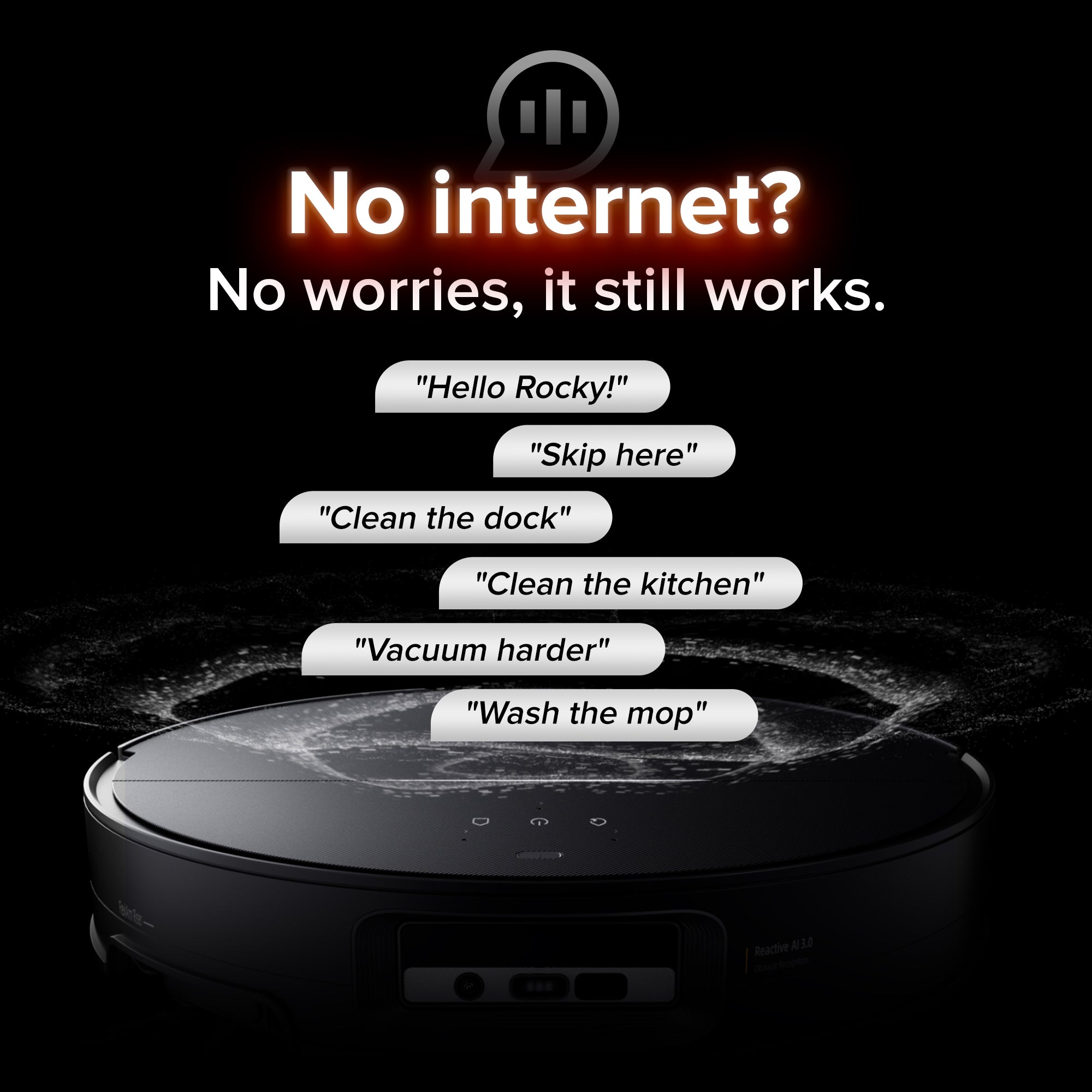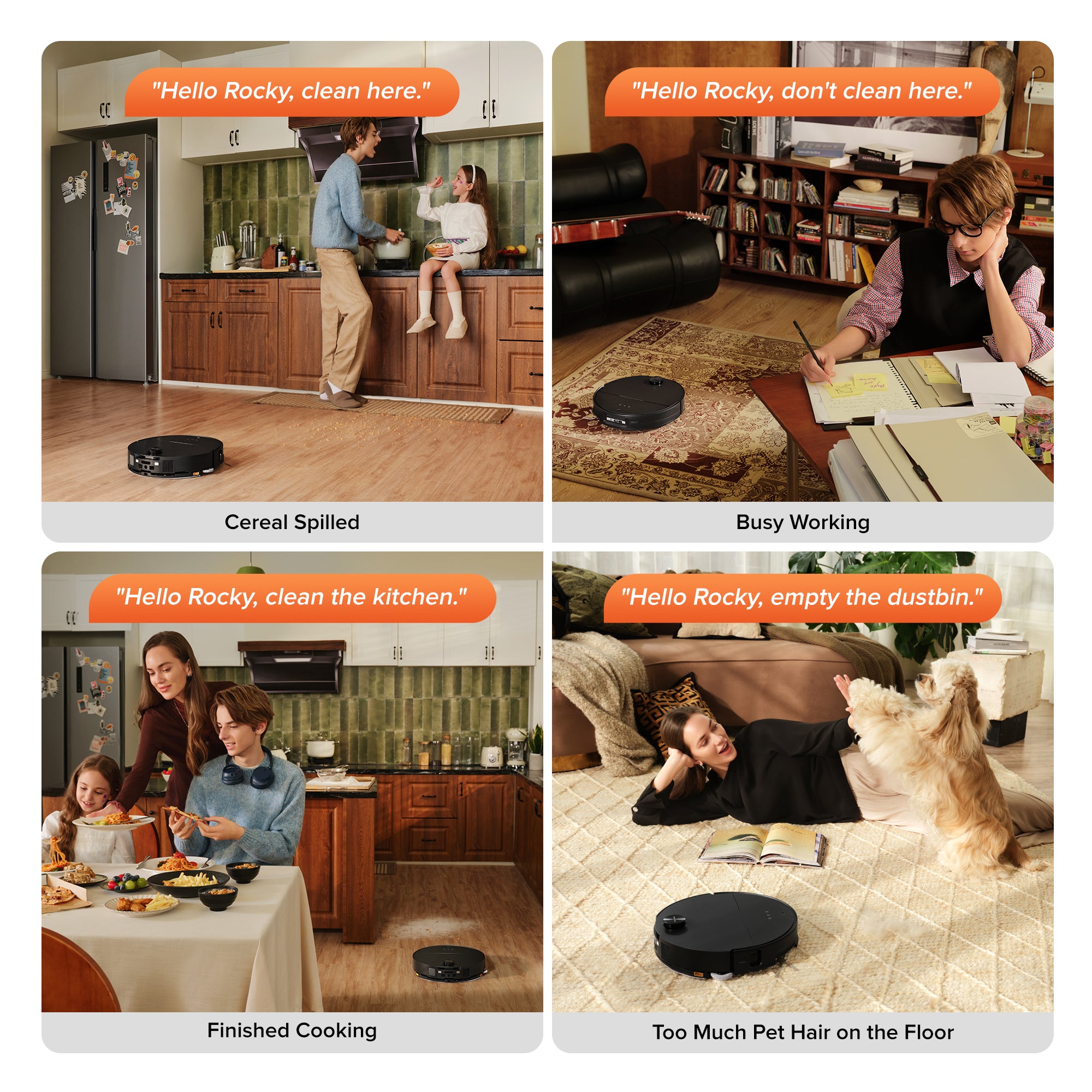 Effortlessly kickstart cleaning with a simple "Hello Rocky", even without a network connection. Whether you're working, cooking, or simply relaxing, keeping your space clean has never been easier.