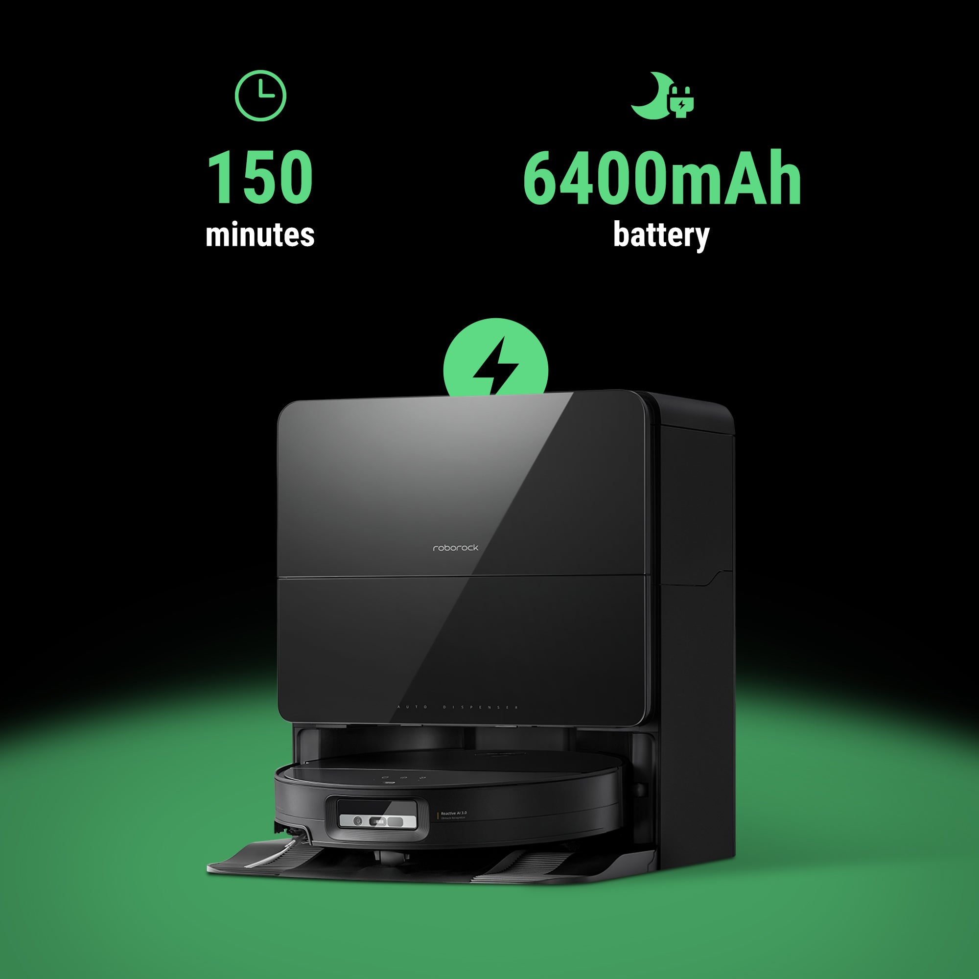 RockDock® Ultra 2.0 fully powers a 6400mAh battery in just 150 minutes. The dock intelligently adjusts the charge needed based on the remaining area, so you don't need to wait until it's fully charged.*